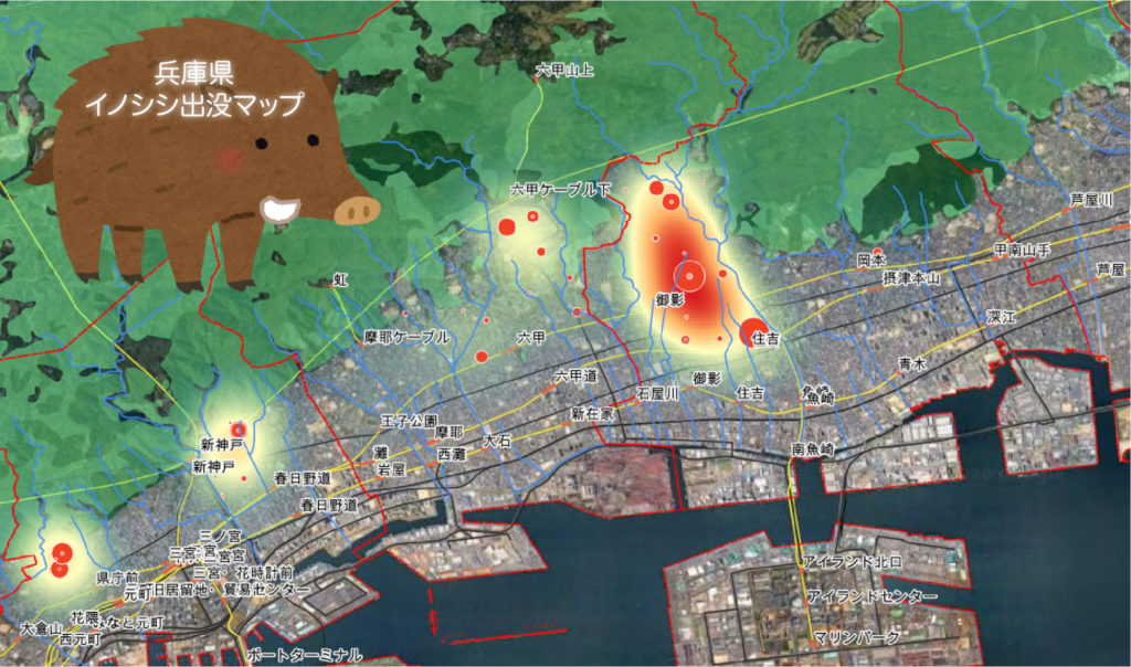 兵庫県イノシシ出没マップ (画像をクリックして拡大)